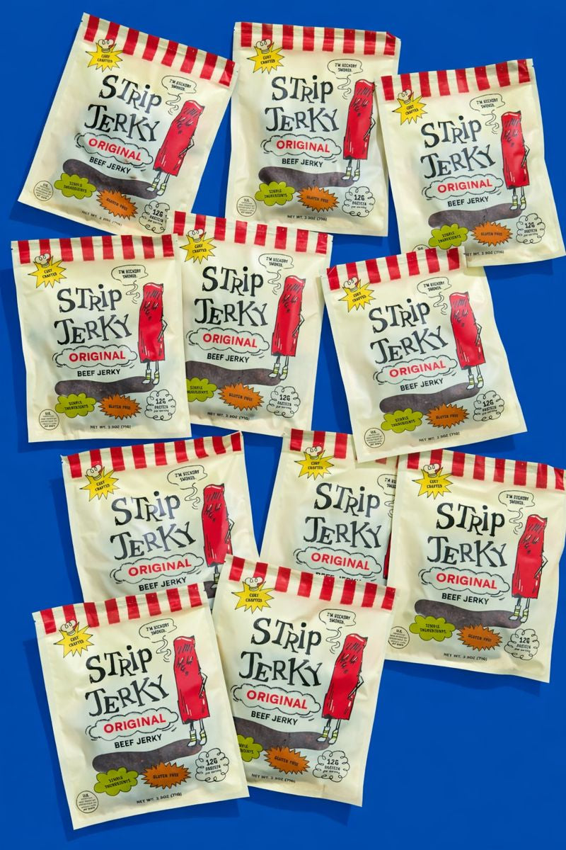 Gourmet beef jerky made with inside round beef and real ingredients. Sweetened with honey. Each bag contains 30g of protein and 195 calories.